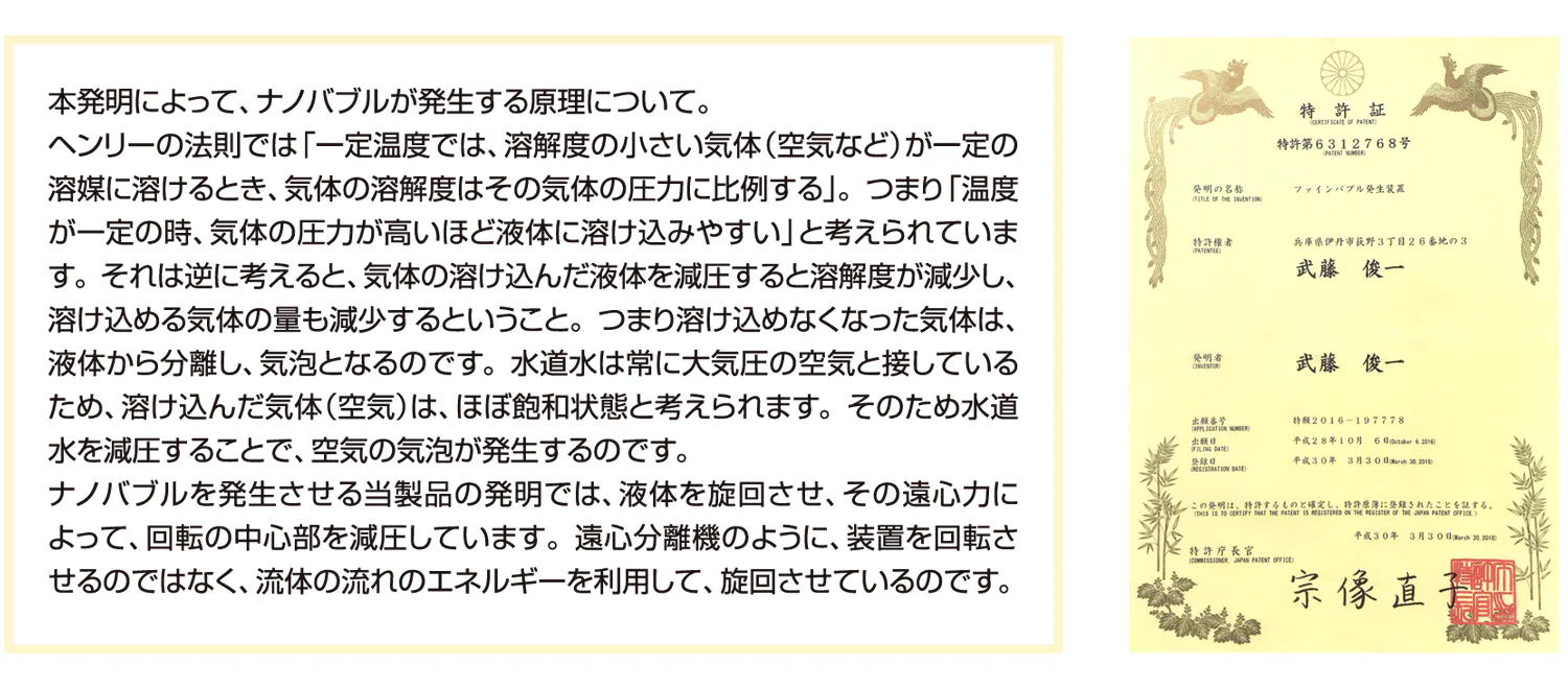 事業内容:ナノバブルの研究開発・特許製品開発、ナノバブル生成装置の製造など
