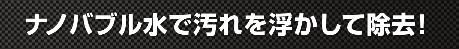噴きかけるのは水道水を減圧し発生させたナノバブル水だけ。薬剤等による愛車へのダメージが無いのはもちろん、噴射の際、周りにいる人や周辺の動植物にも影響はありません。自然環境に対しても優しい次世代クリーナーと言えます。