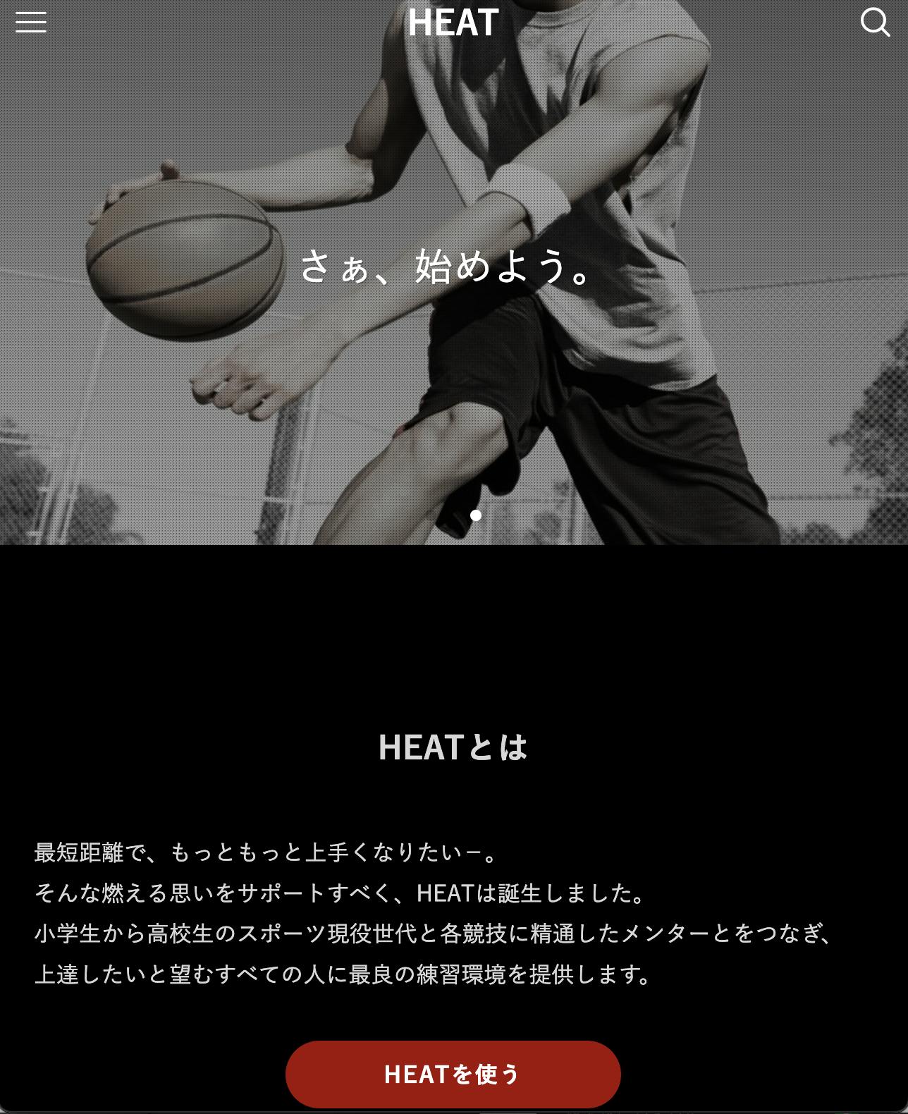HEATでは、「運動部に所属する小中高校生の『もっと上手くなりたい』を育む、叶える。」をミッションに掲げ、現役運動部生と競技経験者を繋ぐマッチングプラットフォームの立上げを行なっています。