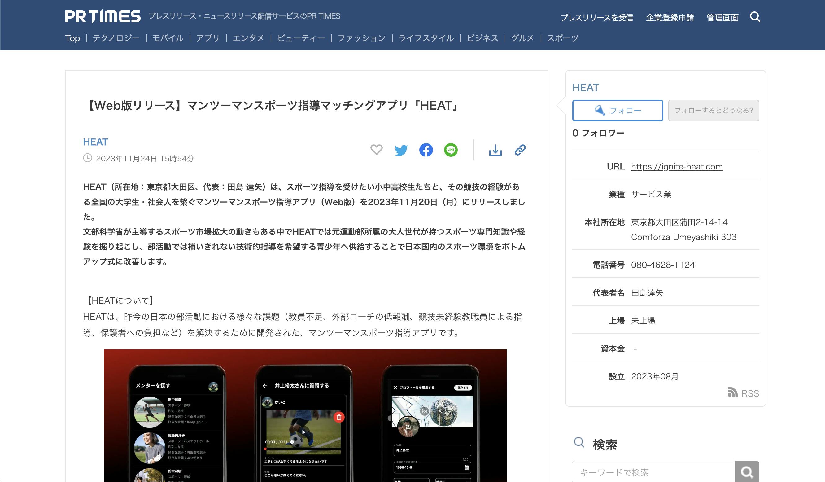 2023/11/24 16:27国内No.1プレスリリース配信サービス、PRTIMES様にてWeb版HEATアプリリリースの広報が配信されました!今後もHEATの活動をより多くの方々に知っていただくために広報に力を入れていきます。引き続き、どうぞよろしくお願いいたします。 もっと見る