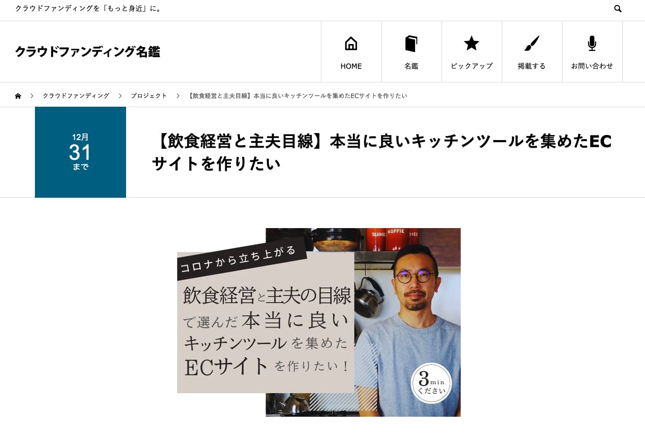 借入金の短期巨額返済から立ち上がり、キッチンツールを販売するECサイトの構築のための運営資金にぜひお力添えをお願いいたします!