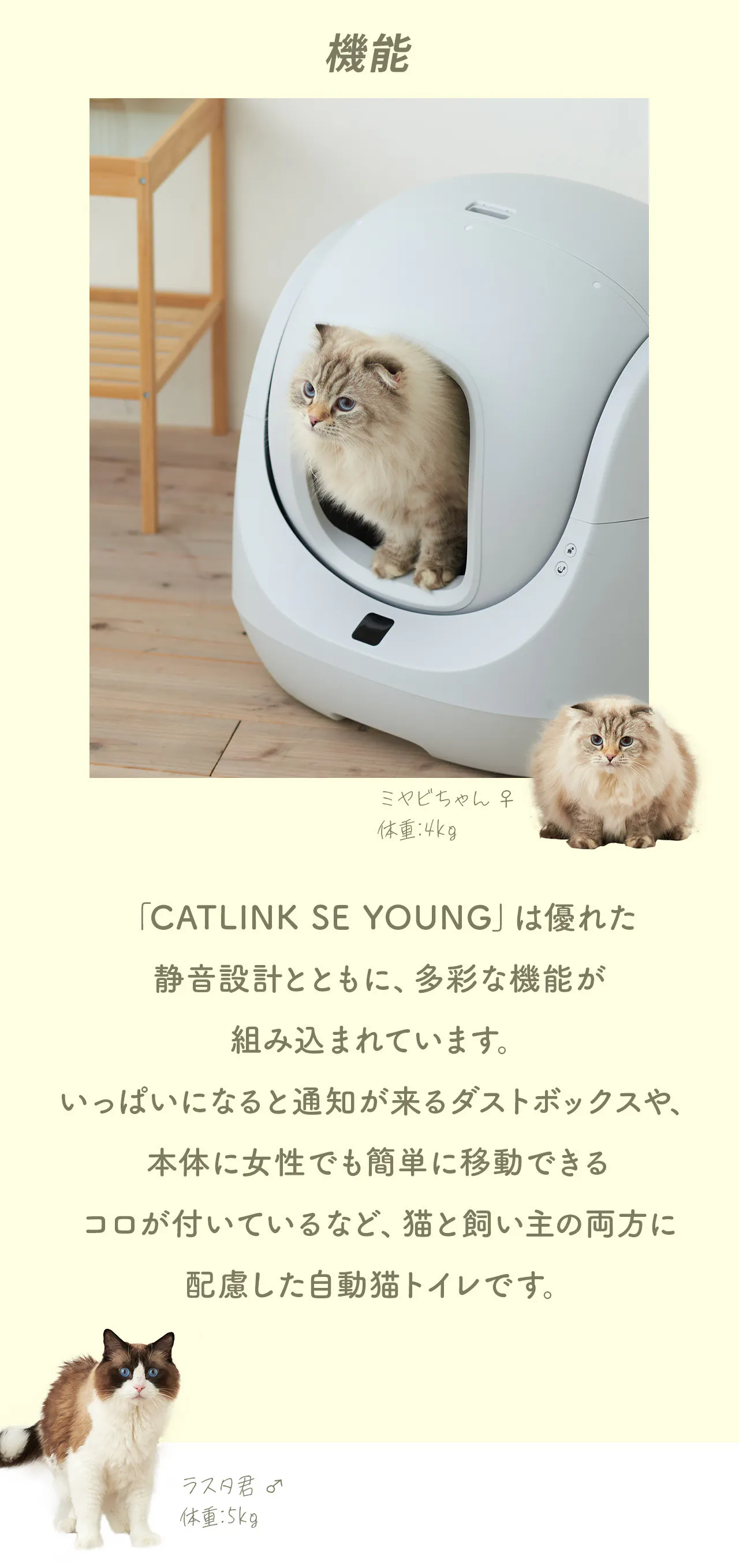 お掃除中の回転音が大きいと、敏感な猫は恐れて自動猫トイレを避けることがあります。そのため、静音性を重視し、設計において音を最小限に抑えることを実現しました。