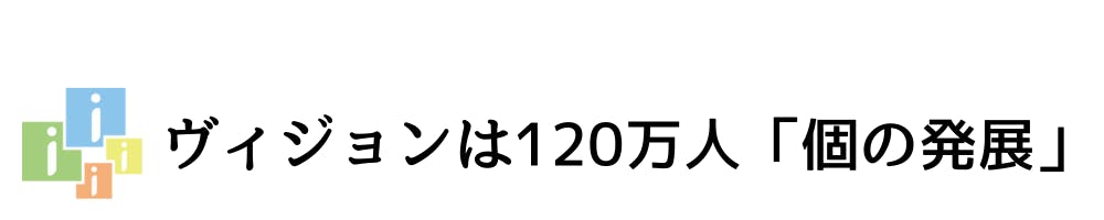 「個の発展」(=自分らしく生きること)を、120万人に届けるチャレンジをしています。