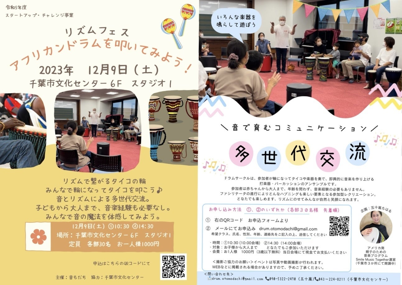 2023年12月9日に、千葉市文化センターにて「リズムフェス アフリカンドラムを叩いてみよう!」のイベントを開催します。