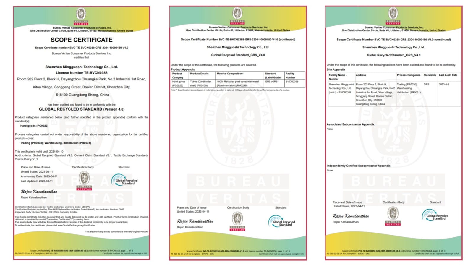 長年リサイクルアルミニウムを使用していましたが、このたび2023年4月に「リサイクルアルミニウム」であるという証明(Global Recycled Standard(GRS)認証)を取得することができました。