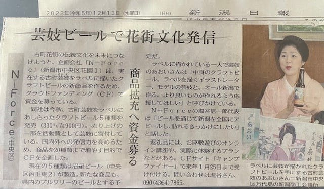 このプロジェクトで新潟花街を全国と世界に発信アピールするきっかけとなり、多くの方々が古町花街へ訪れていただきたいと思います。新潟古町花街クラフトビールのクラウドファンデングの応援をしています。