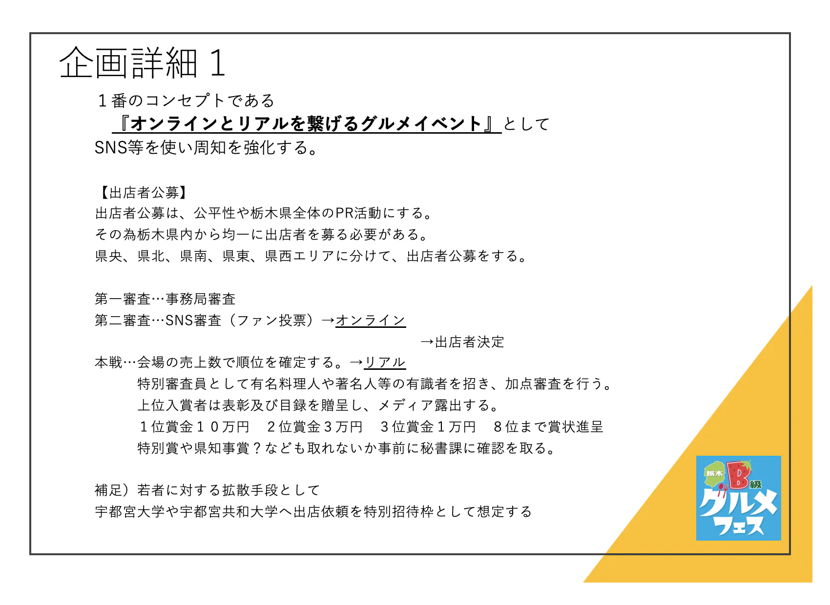 B級グルメフェスを開催することにより、栃木県の持つ食の魅力を最大限にPRし、県内外の沢山の人々に広げたいです!