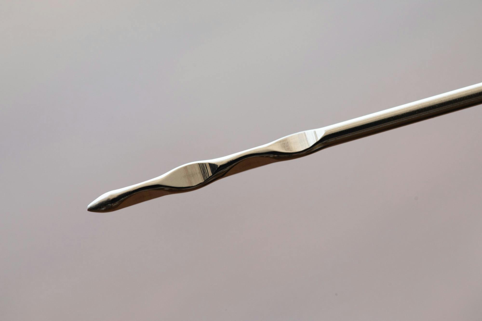 針のスペシャリストとして様々な加工に挑戦してきた経験を活かし、食べ物を抜けづらくするためのプレス加工を施し、先端は1本1本手仕事で研磨しています。刺しやすく、使い心地の良い製品を目指しました。