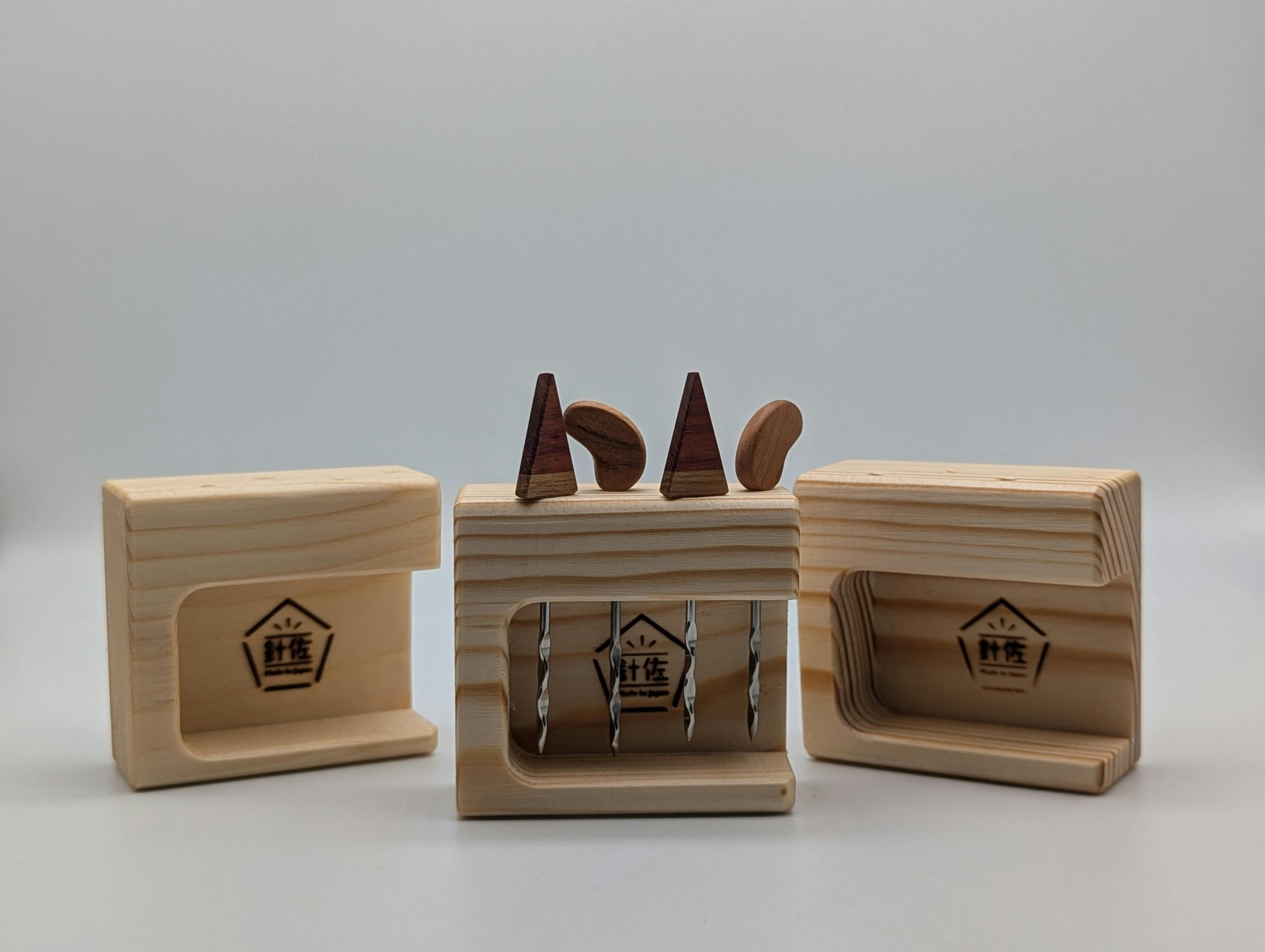 金属のピックに木のあたたかみを取り入れるため、自分たちの大好きな木工職人「手仕事屋manomano」の井上さん、小磯さんに相談。