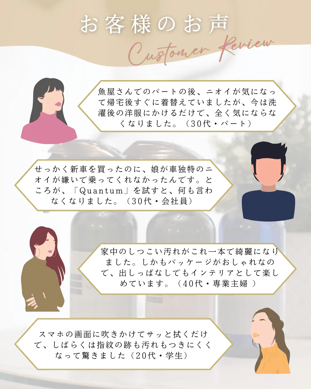 どのご家庭でも、日常の中で「Quantum(クアンタム)」の実力を十分にご理解いただける声をいただきました!