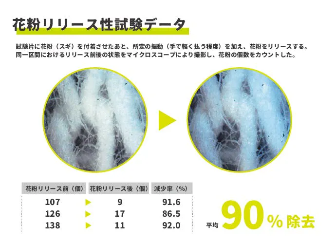 多くの方が悩む花粉症。外出先だけでなく、衣服に付着した花粉を室内持ち込んでしまうことがあります。「Quantum(クアンタム)」は、お出かけ前や洗濯後、衣類にスプレーしておくだけで、軽く手やブラシで払う程度でも約90%の花粉が除去できると証明されています。