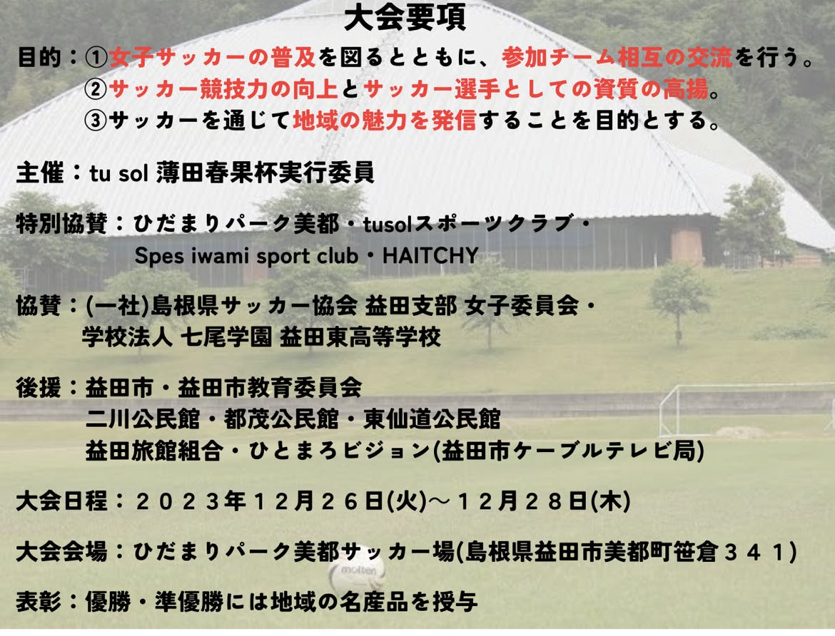 私たちは薄田春果杯を通じて多くの女子選手がチャレンジ、輝き続けれる場所提供していきたいと考えております。