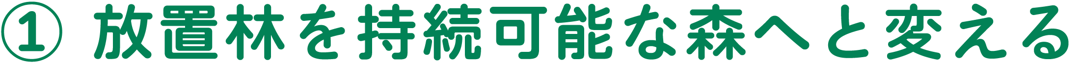 ・放置林を適切に手入れ(壊れない道づくり、藪化の改善、豊かな森林を残すための間伐など)