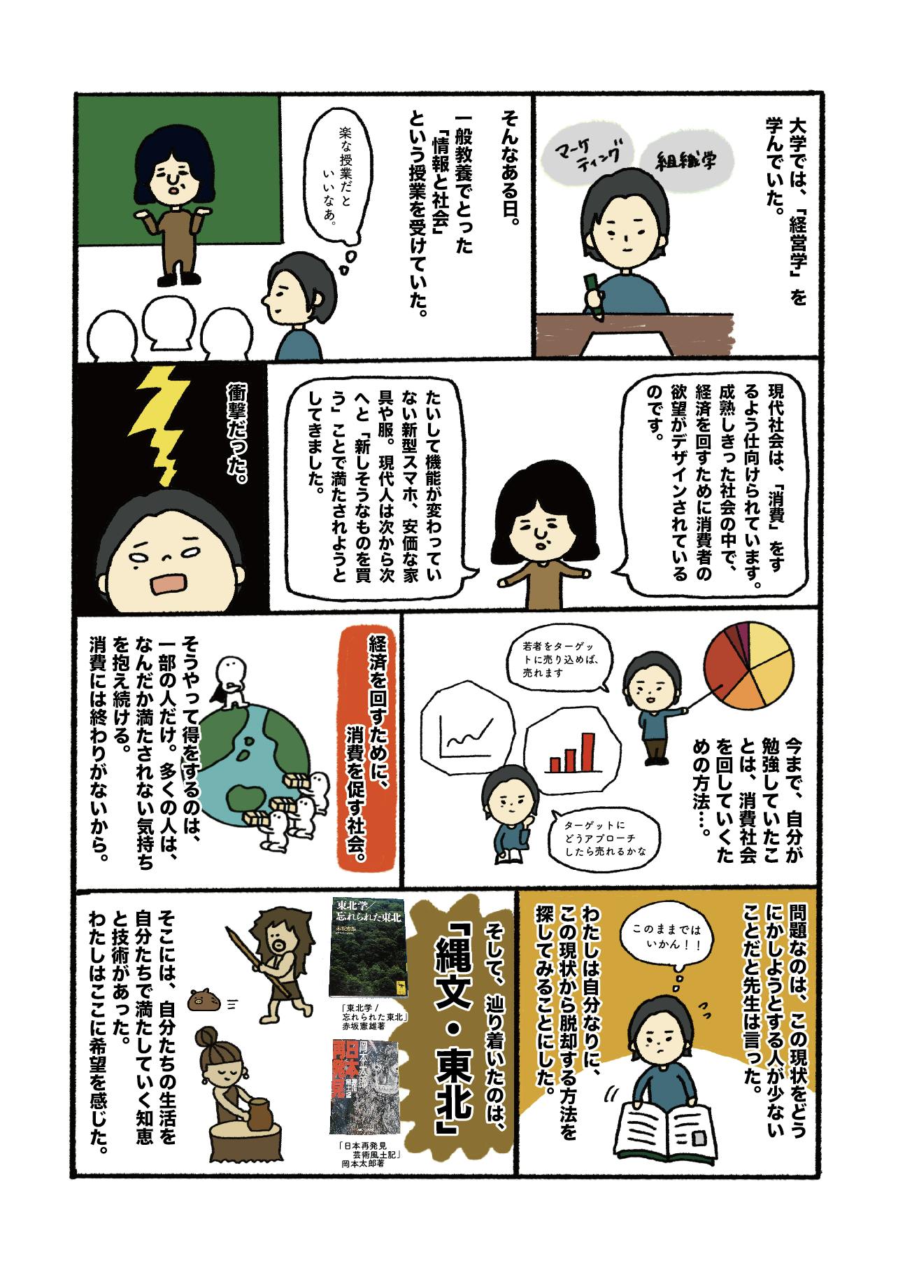 大学では経営学を専攻。在学中に消費や経済を主体として成り立つ社会が持つ様々な問題点(環境破壊、