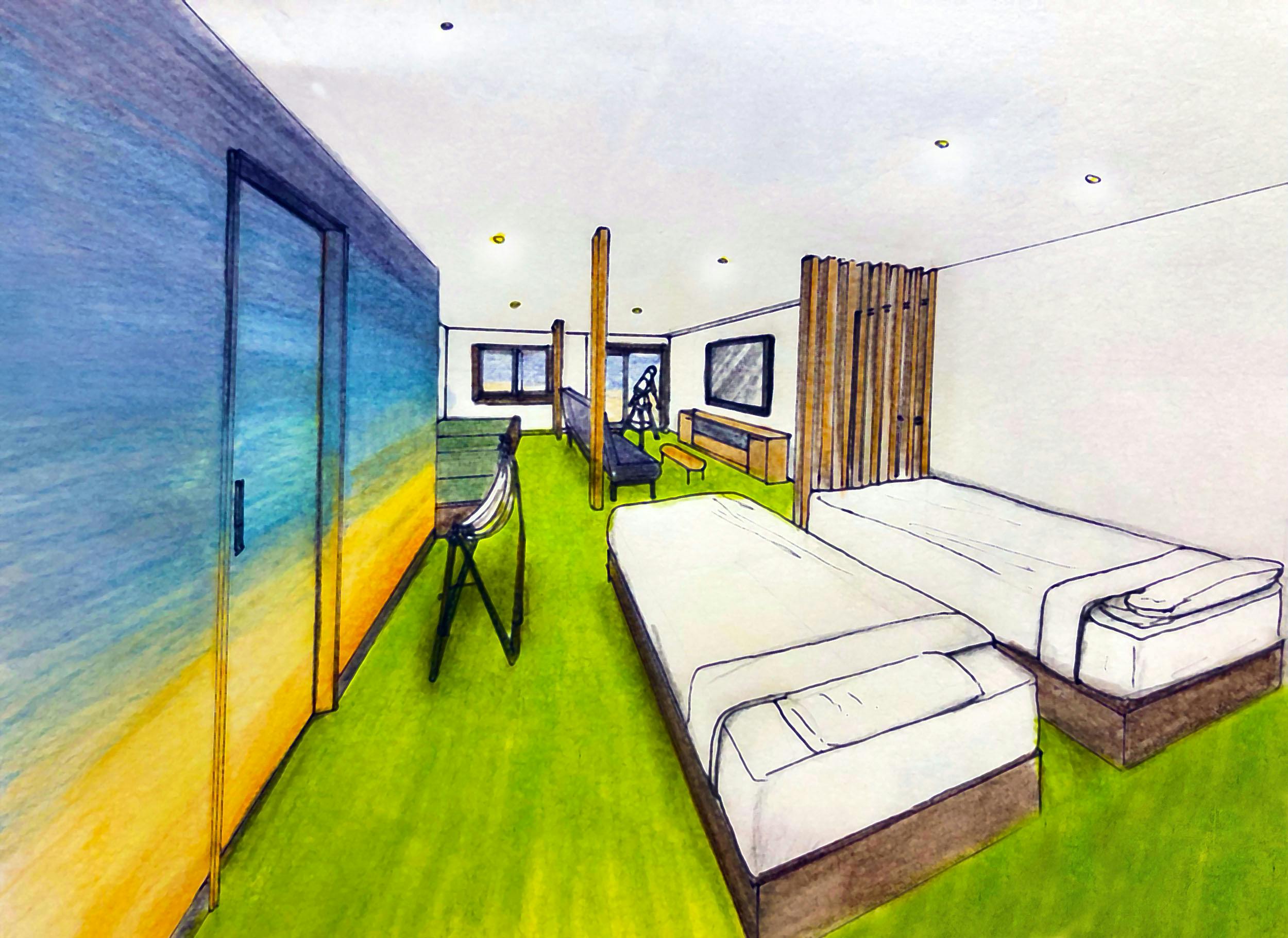 そこで、外でも星空が楽しめ、館内でもゆっくりと星空が楽しめる宿をつくりたいと思い立ちました。