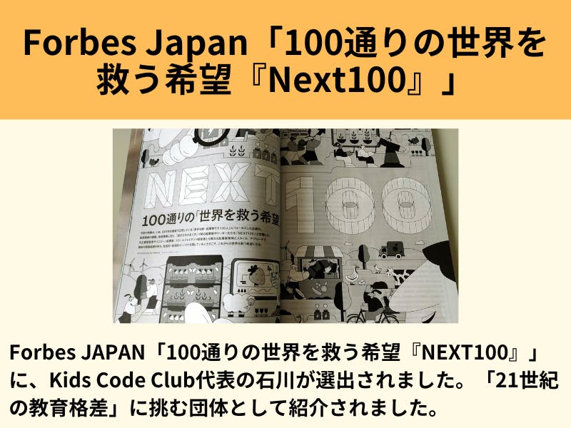 子どもたちが「困難の中にあっても前に進む力」「自ら学び続ける力」を早い時期から身につけ、自分の人生を自分で切り拓いていくきっかけに。「Kids Code Club」がそんな存在であり続けるために、私たちを応援してください。よろしくお願いします!
