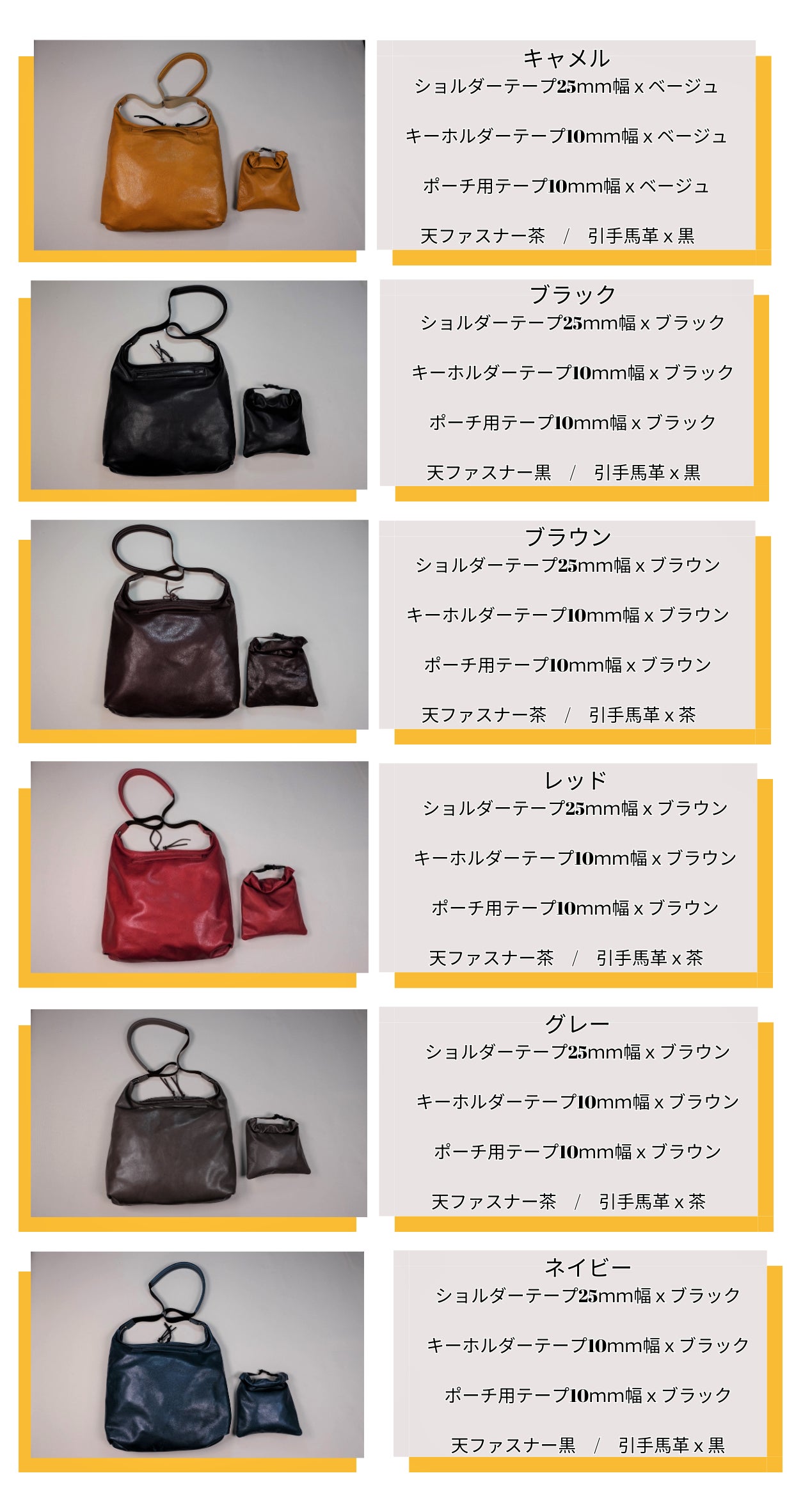 全ての商品にマルチポーチが付きます。ポーチの色はバッグ本体と同色になります。