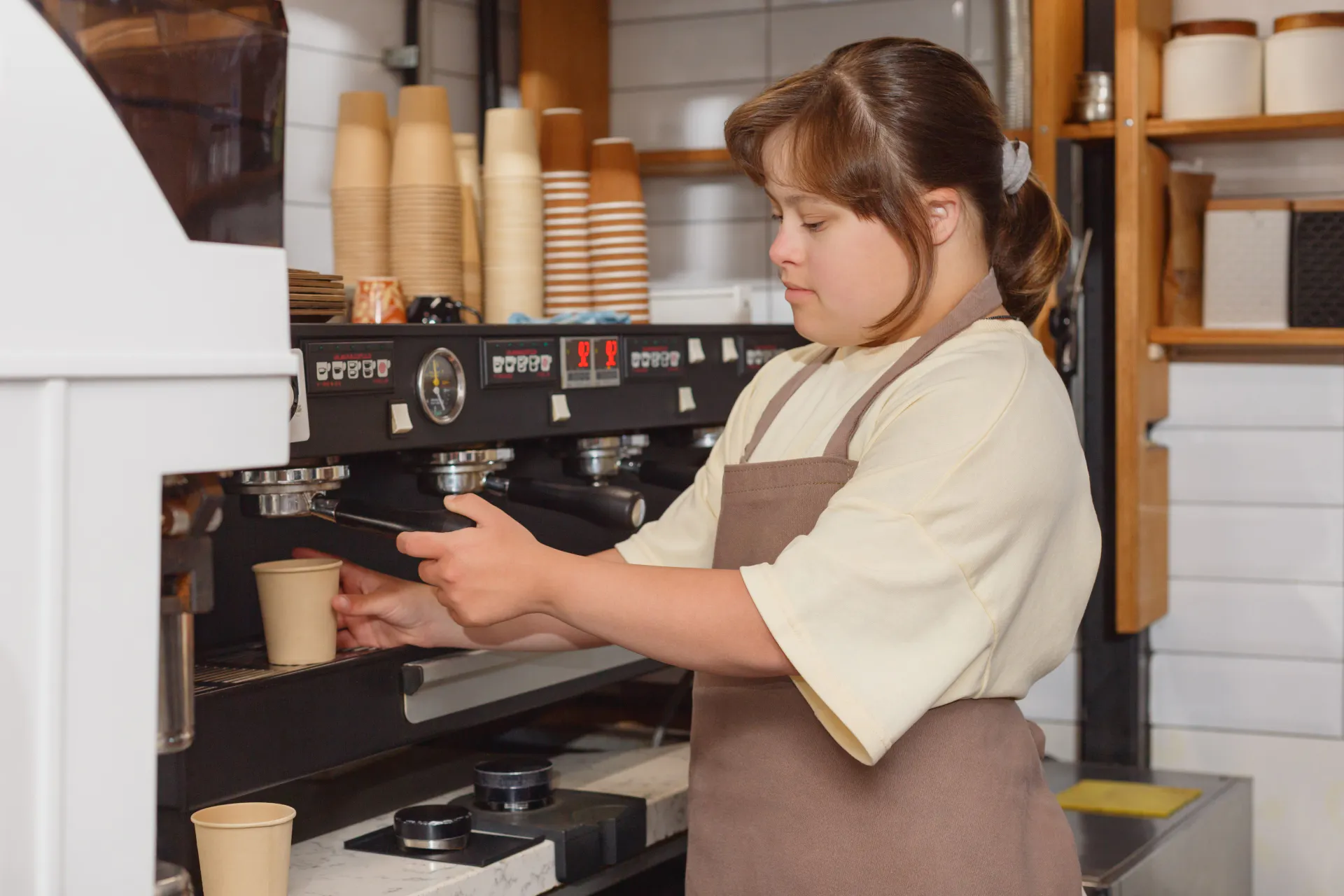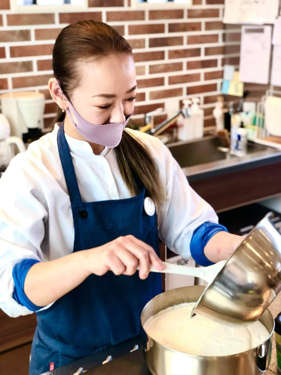 私は今現在、高岡市にある障害者施設「with one」のカフェ部門『soup&cafe もやいこ』にて、調理指導と菓子製造を利用者の人たちと働いています。