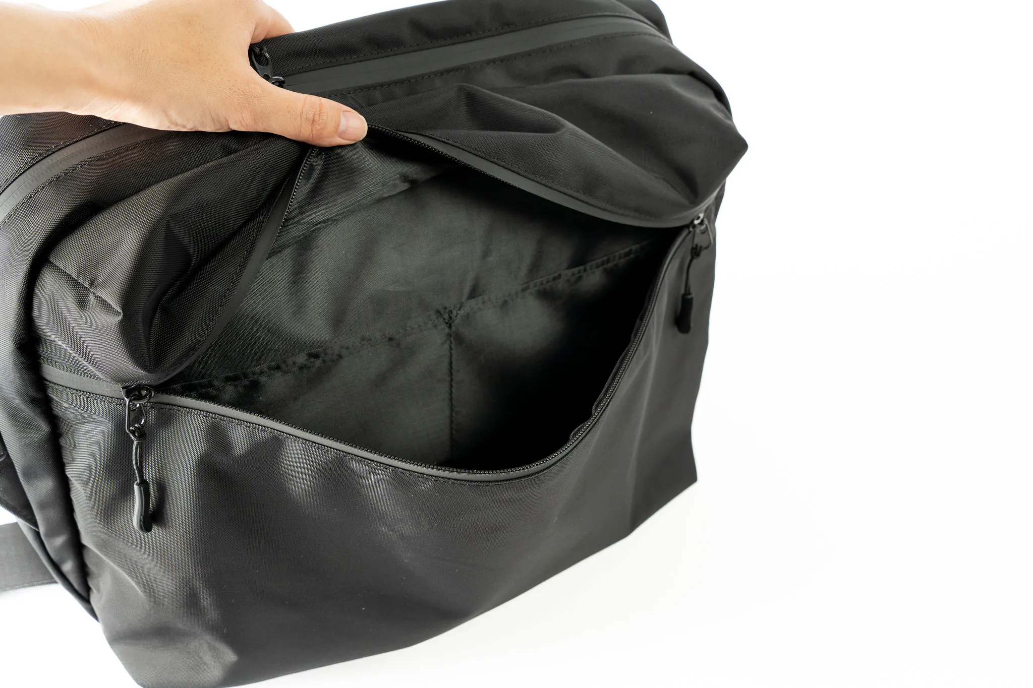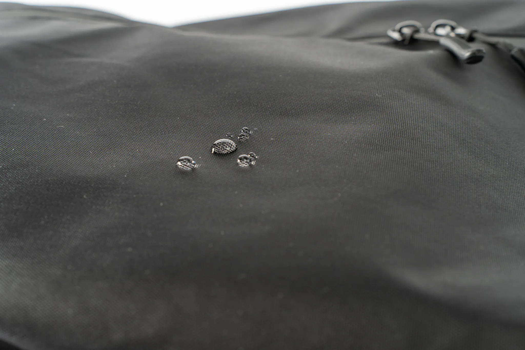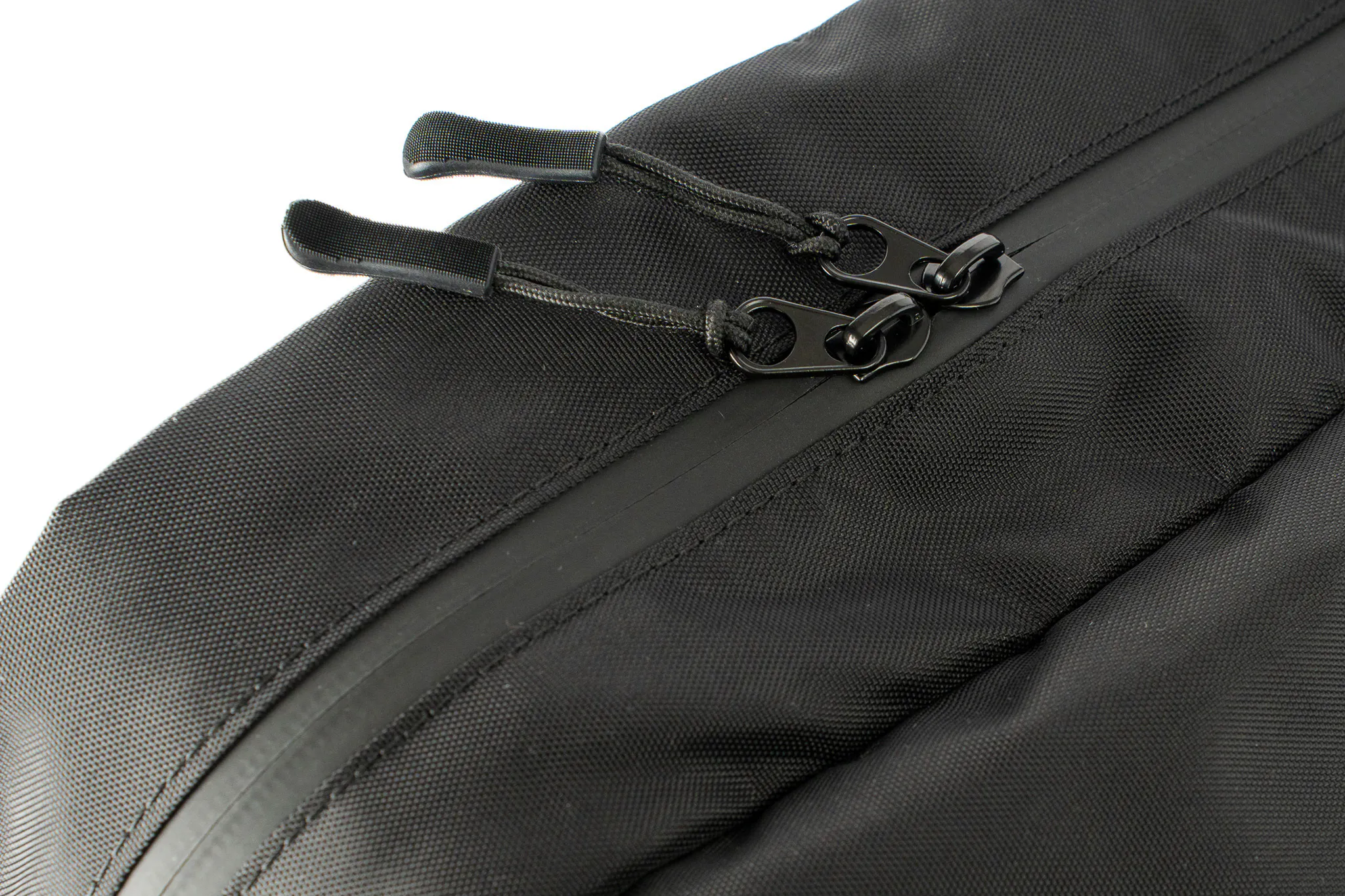 各コンパートメントに止水ファスナーを採用しているのも、注目していただきたいポイント。小雨程度なら、このままの状態で持ち歩いてもまったく問題ない頼もしさです。
