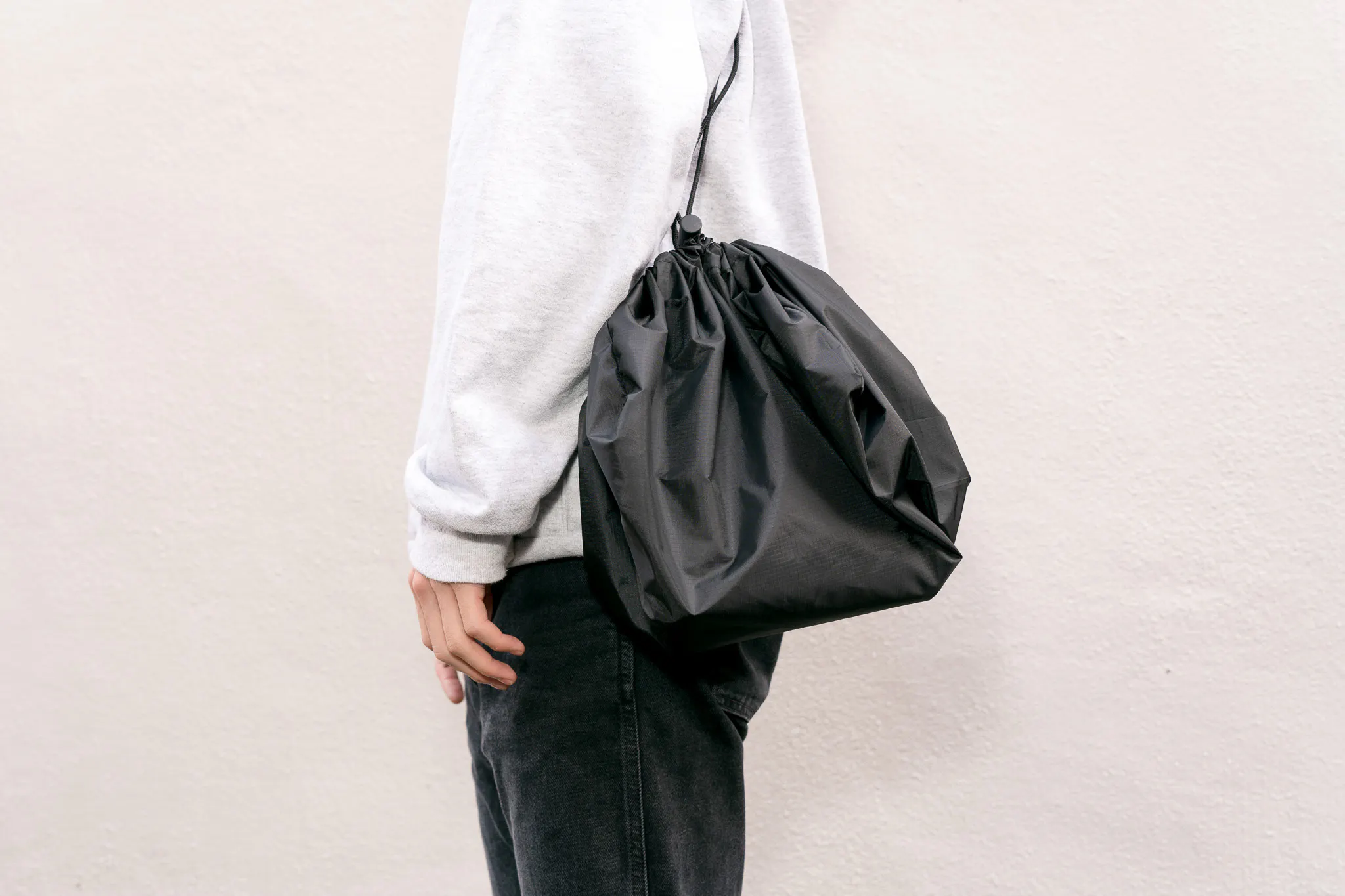 しかもこのレインカバー、巾着スタイルのエコバッグへの変形機能も搭載。外出先でちょっとした買い物をするときや、荷物を詰め替えてより身軽に行動したいときに大活躍する仕様です。
