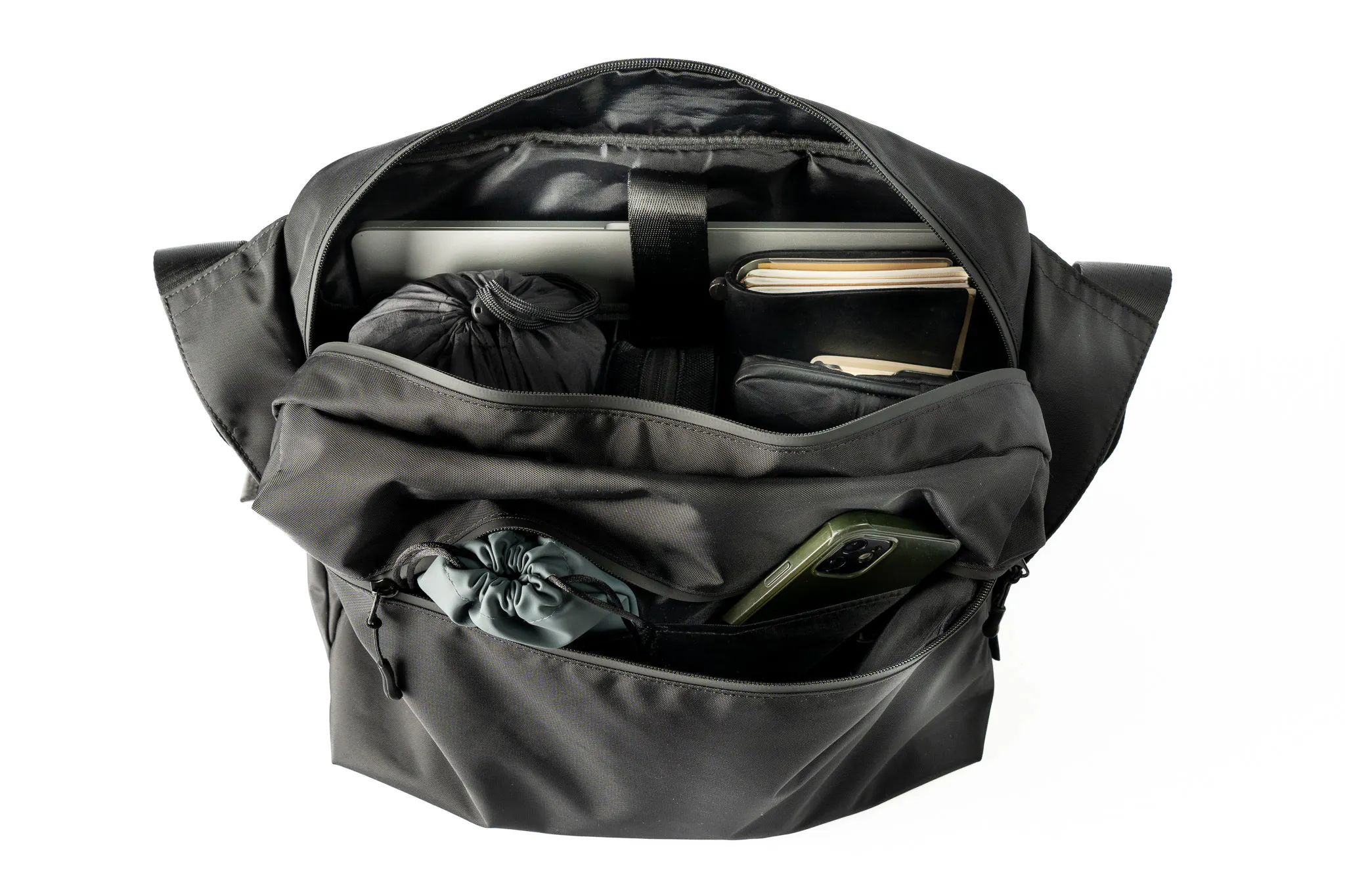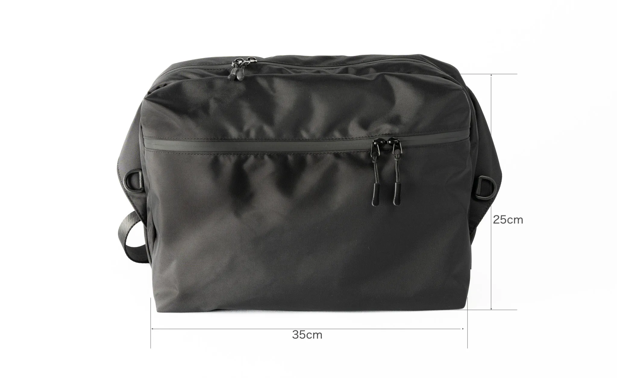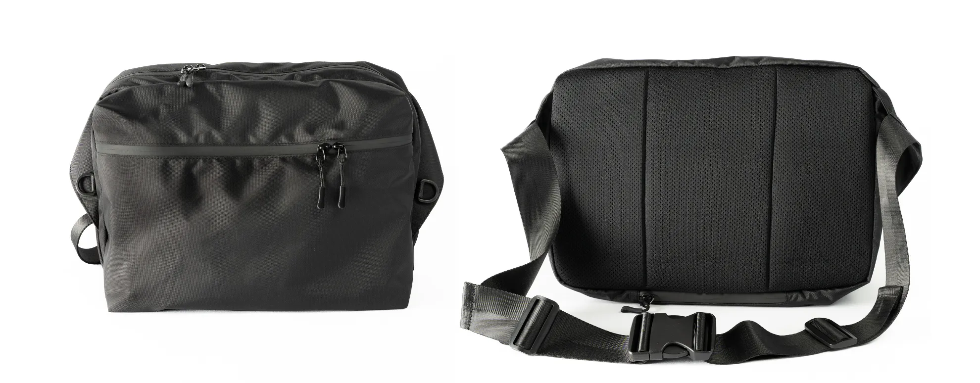 大きすぎず小さすぎなくて、無駄な装飾や余計な機能を削ぎ落としたシンプルかつ合理的なバッグ。カジュアルにもジャケットスタイルにも合って、欲を言えばタフさも撥水性も兼ね備えている。それでいて洗練されたミニマルデザインとスタイリッシュさで、10年先も使い続けたいと思わせてくれるもの…。そんな僕のわがままをすべて詰め込んだ、ショルダーバッグがついに完成しました。環境に配慮したリサイクル生地を採用できたのも、誇れるポイント。長い長いバッグ探しの旅からついに卒業できそうです。