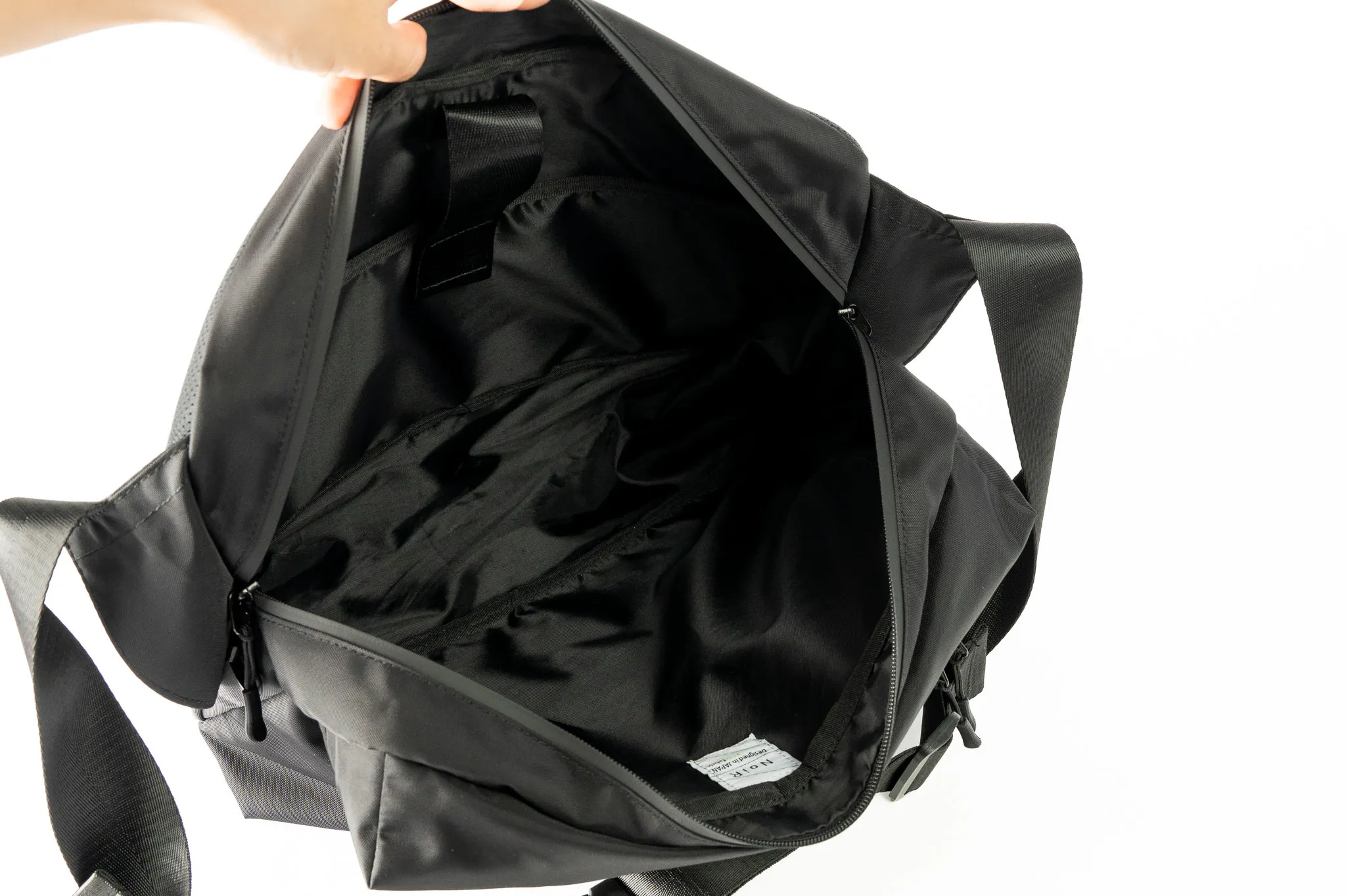 今回、僕たちの想いを叶えてくれたのが、普段使いのバッグにアクティブな機能性を添えるブランド・NoiR(ノアール)。回収された廃棄ペットボトルを原料としたエコフレンドリーな生地を素材に、環境への配慮を忘れないモノづくりをしている点に大きく惹かれました。