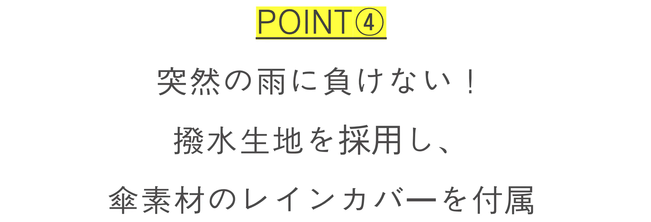 しかし、この状態では突然のゲリラ豪雨など、土砂降りの雨には対処できないのが不安な方へ…。今回は背面のファスナーポケットに収納できる、取り外し可能な傘素材のレインカバーを付属。絶対に濡らせない荷物を守ります。