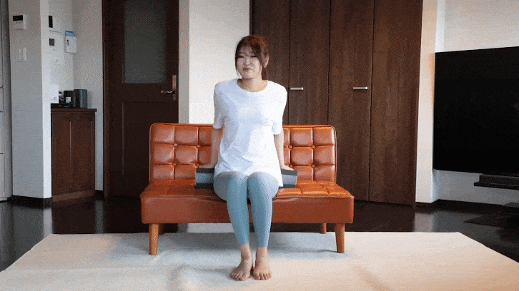コアスクイーズサーフェスを「押しつぶしたままキープする」ことで、体幹が強くなり、姿勢が整います。