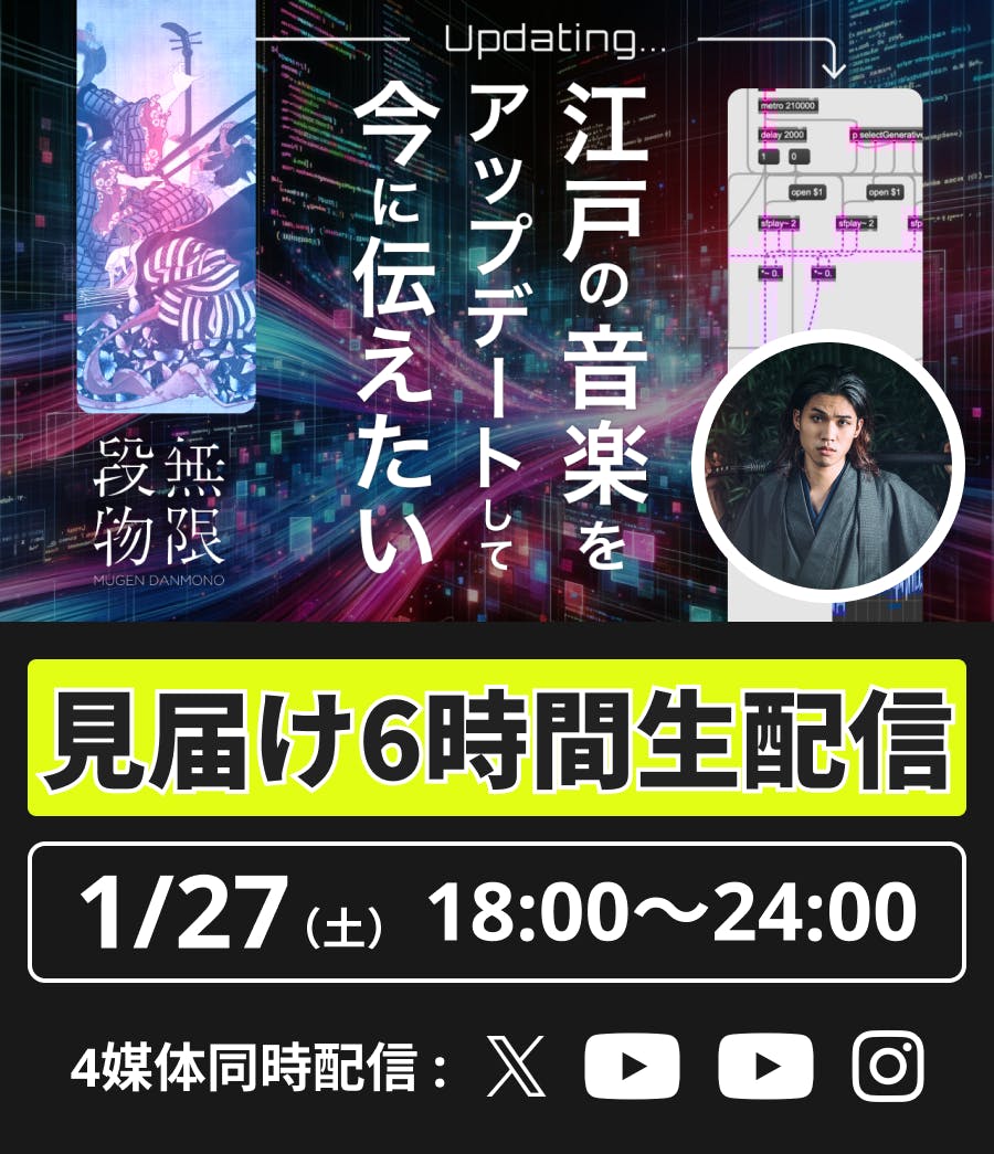 「無限段物」は、大量の和楽器の音源を、コンピュータ上で処理することで、新たな音楽を生成する「和楽器のためのバーチャル合奏システム」です。