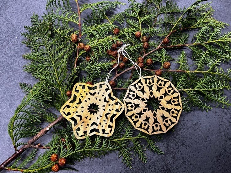 それは2021年暮れに高校生によるデザインで誕生した「光る!ウルシの木のオーナメント」。レーザーカット加工は埼玉県の福祉施設が担当してくれています。