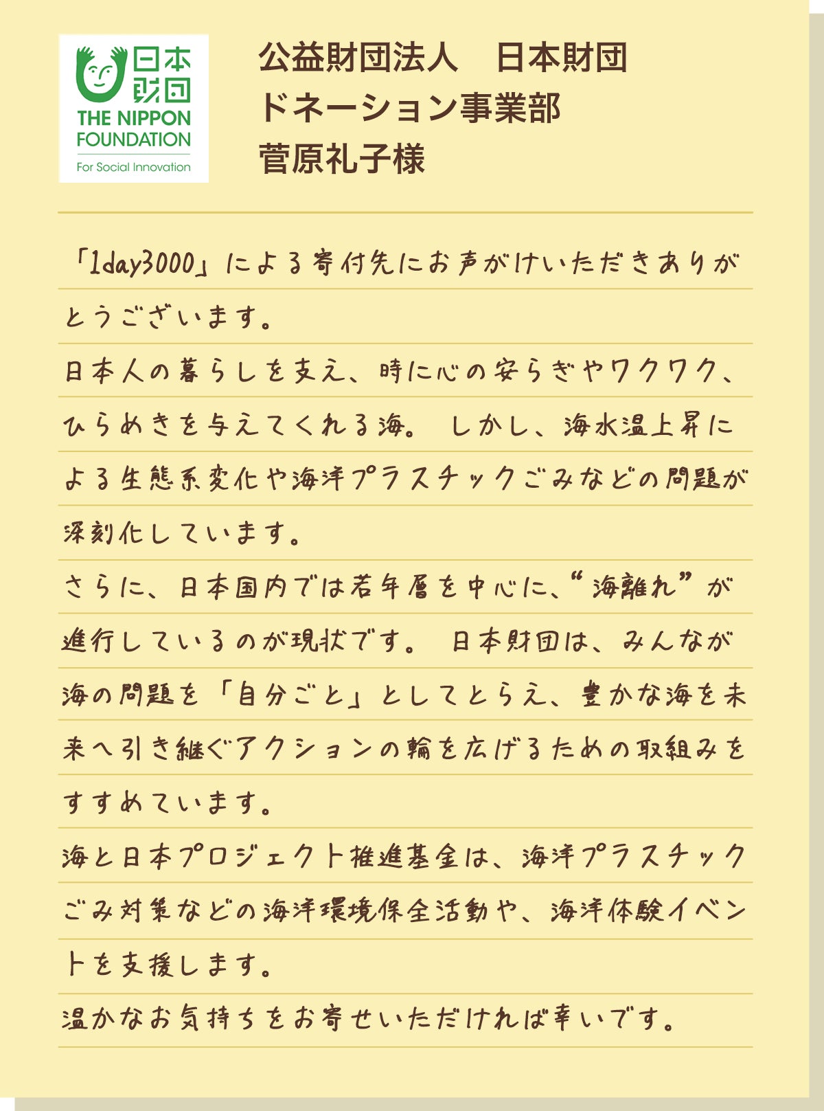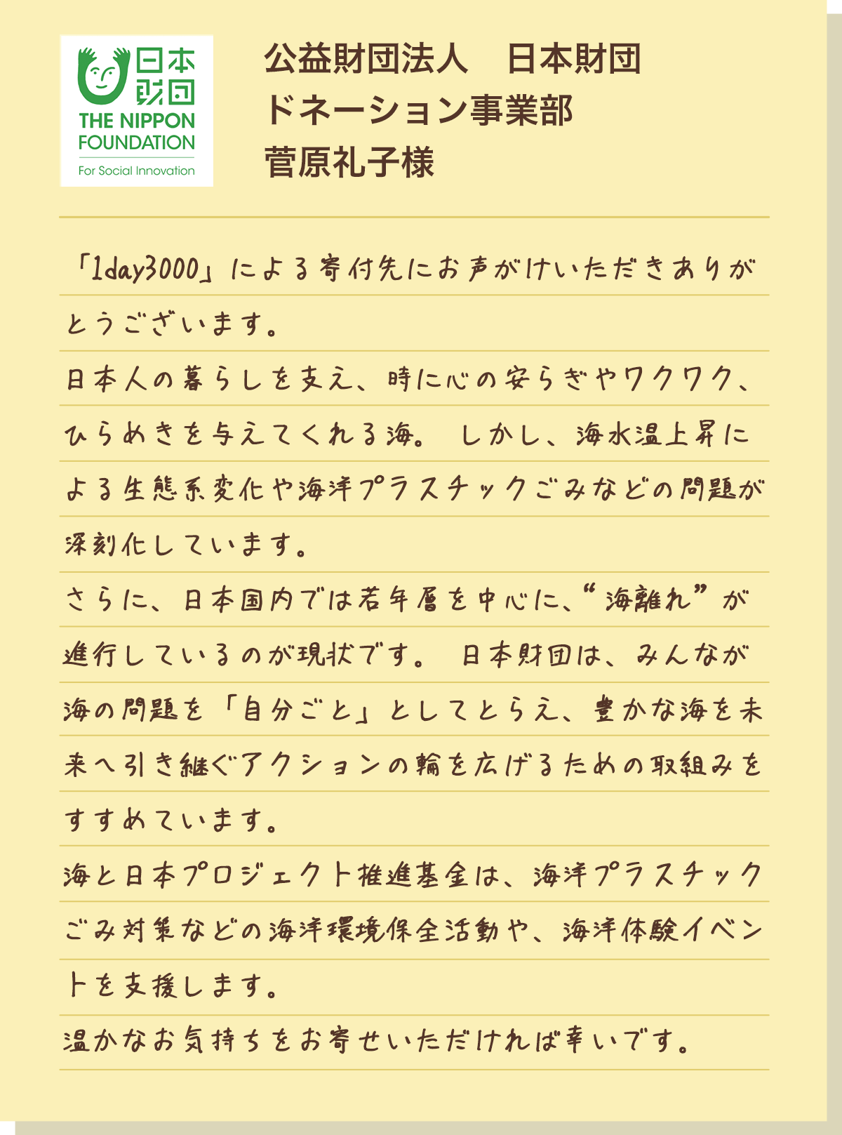 公益財団法人 日本財団の推進する「海と日本PROJECT」では、