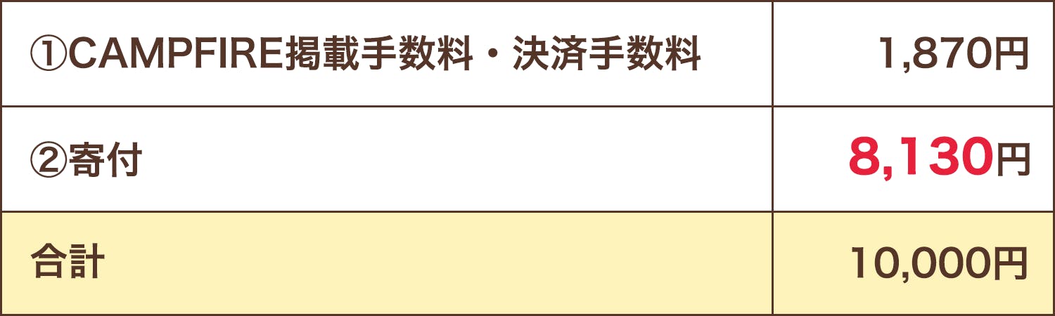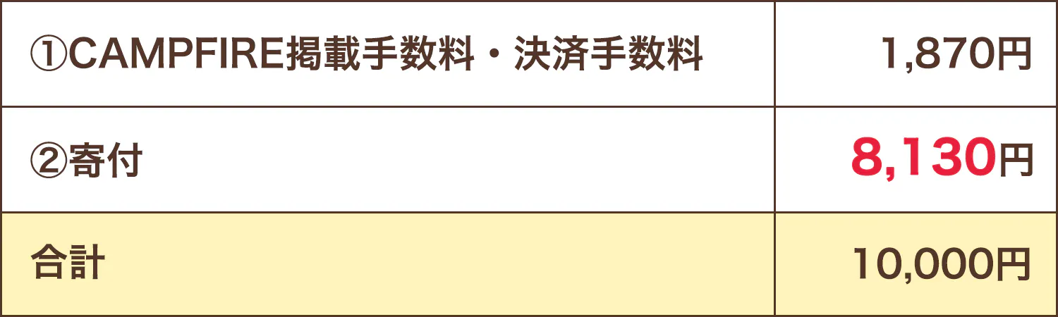 ※支援金額1万円以上→支援金額の2.5%(税込)