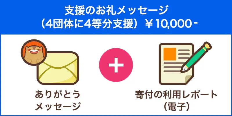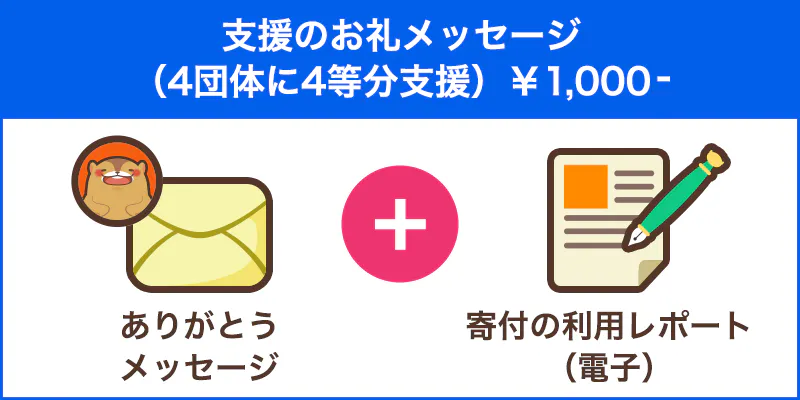 支援金4,000円のうち1,000円は4団体に4等分して寄付されます。