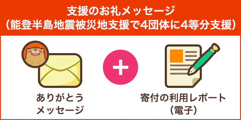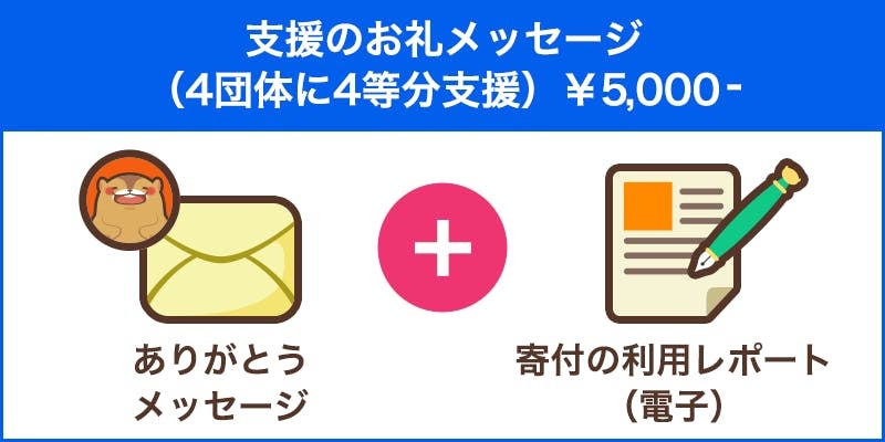また4団体それぞれの寄付金の利用レポートをメッセージにて送付します。