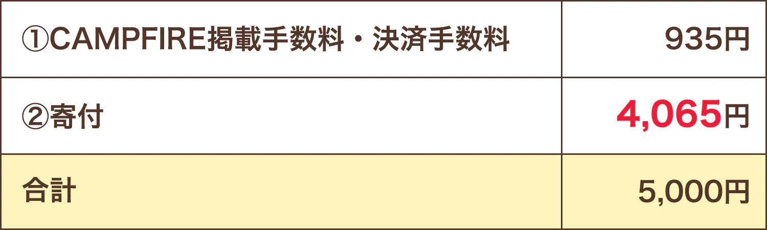 〇支援金5,000円の場合の内訳↓