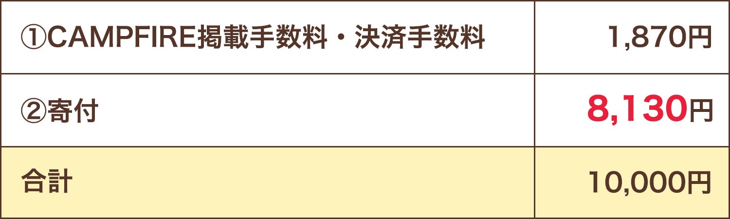 支援いただいた金額のうち、CAMPFIREの手数料(17%+税)を除いた全額を寄付します。