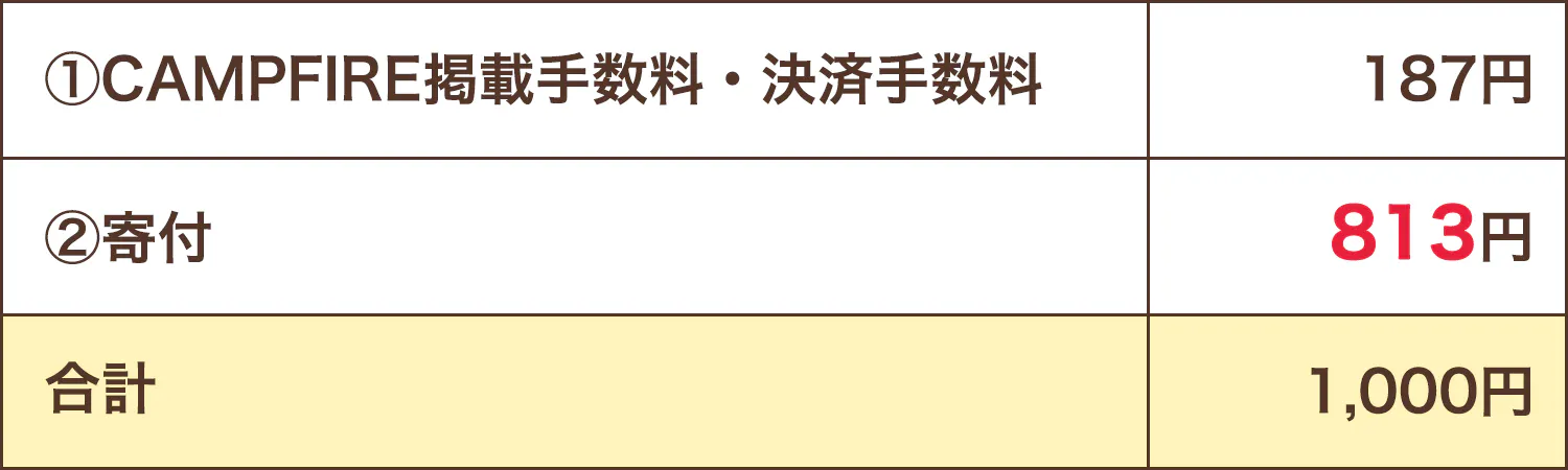 〇支援金1,000円の場合の内訳↓
