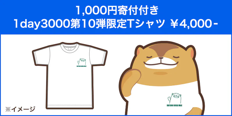 2種類目は、『1,000円寄付付き 1day3000第10弾限定Tシャツ』です。