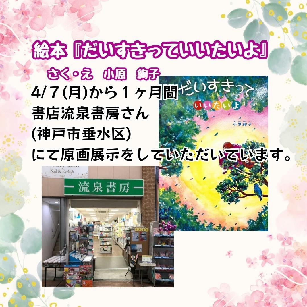 2025/04/09 00:25お世話になっております。小原絢子です。今日は上の子の小学校の入学式です。桜もなんとかもってよかったです。ピカピカの1年生、新たな世界に母もドキドキワクワクです!本日はお知らせです!4/7(月)から5/6(火)まで流泉書房さんにて(神戸市垂水区陸ノ町1ー2ー2)絵本『だいすきっていいたいよ』の原画を10枚展示していたただいています!金曜日の17:15~は子どもが子どもに絵本を読み聞かせるイベントをされていたり、お店の中に駄菓子が売られていたりと、子どもたちがたくさん集まる愛溢れる書店さんです。4/18(金)には私もイベントに参加させて頂いて、読み聞かせの後に『かんたん・たのしいクレパス画』体験会をおこないます♪みんなで楽しく絵を描きましょう!皆様、お時間ありましたら是非お越しください!引き続きどうぞよろしくお願い致します!小原絢子 もっと見る