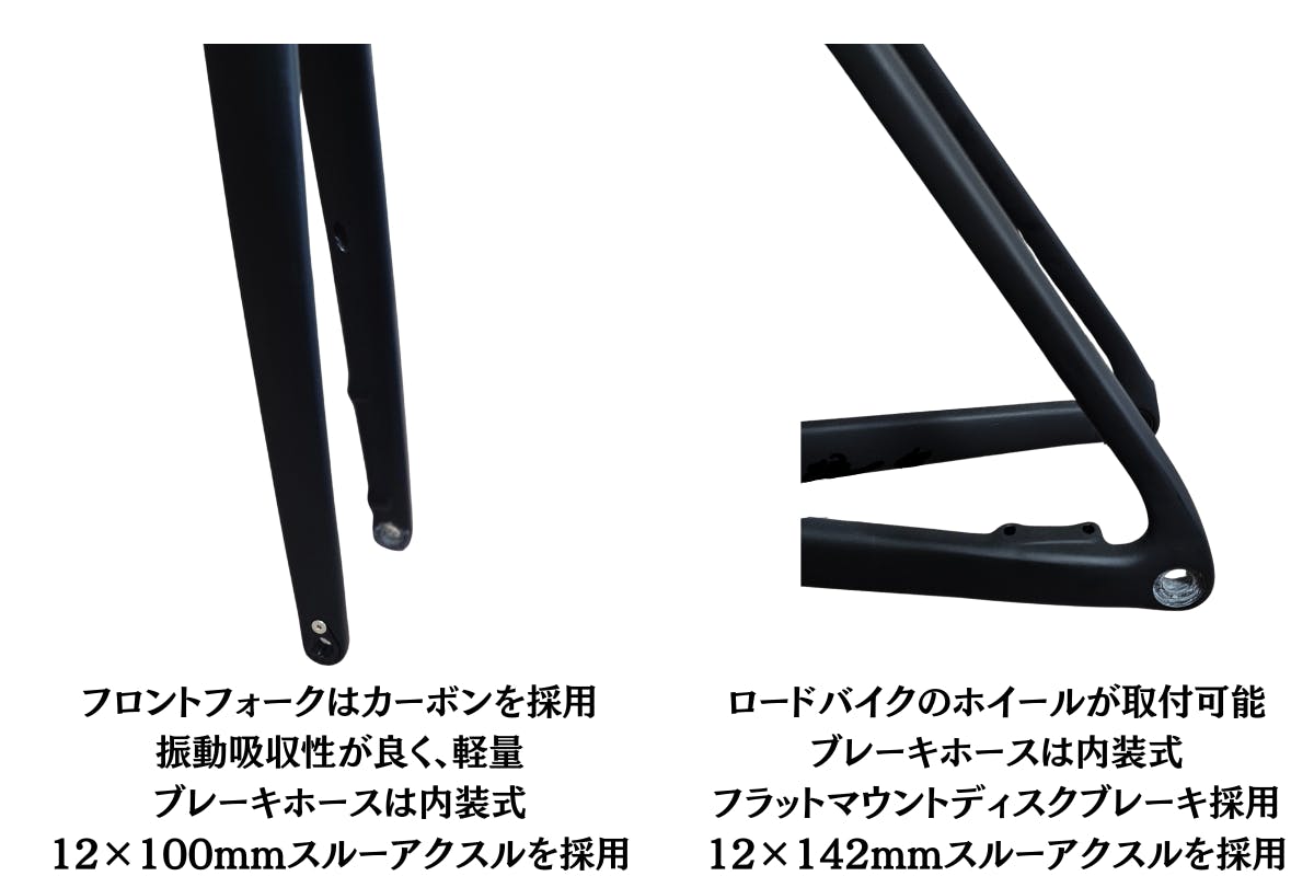 ジオメトリーもロードバイクジオメトリーを採用し、深い前傾姿勢を取ることができるようにしました。アップライトな姿勢で乗りたい方は短いステムとライザーバーを採用することで姿勢のコントロールを行えます。