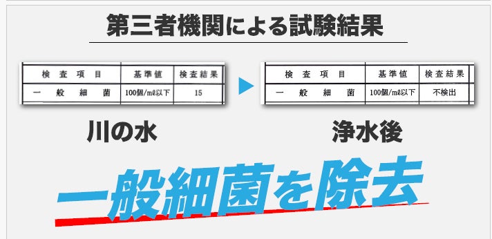 また日本国内の第三者機関(滌化化学)による試験でも、一般細菌が検出できないレベルまで浄化していることが結果として出ています。