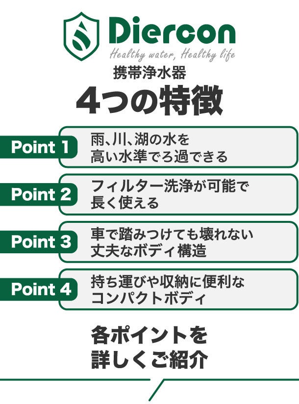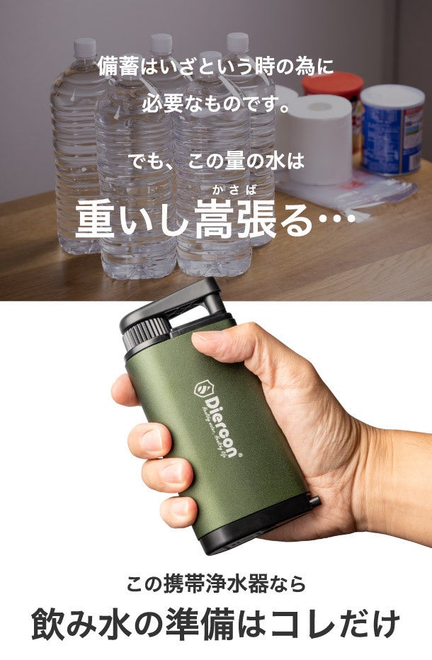 その小さなボディの中に、しっかりとした浄水機能を有し、いざという時はもちろん、アウトドアなどでもその威力を遺憾無く発揮します。