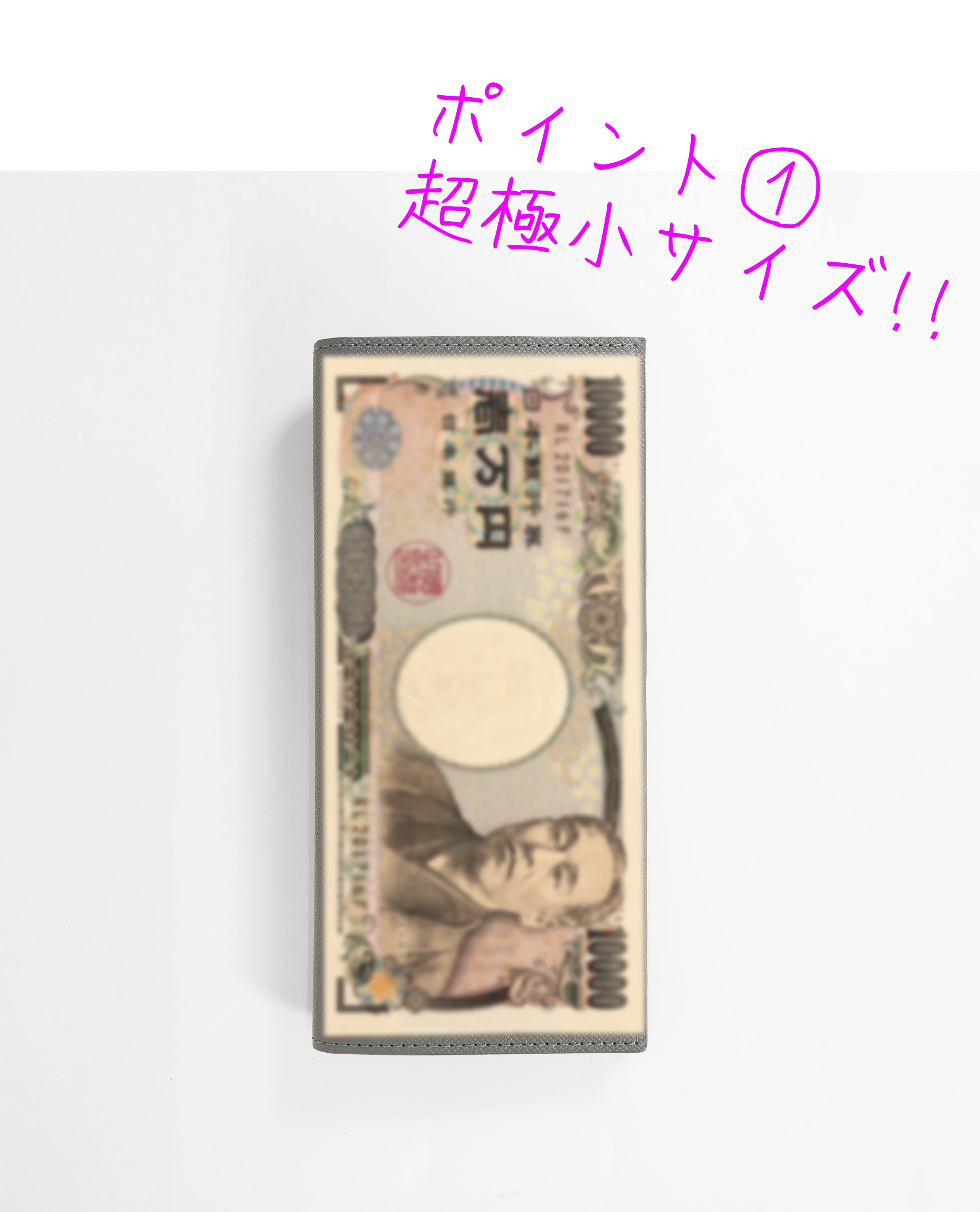 驚くほど小さなサイズで、まさに壱万円札をそのまま手に持つような感覚。