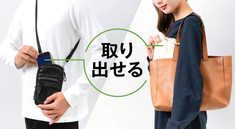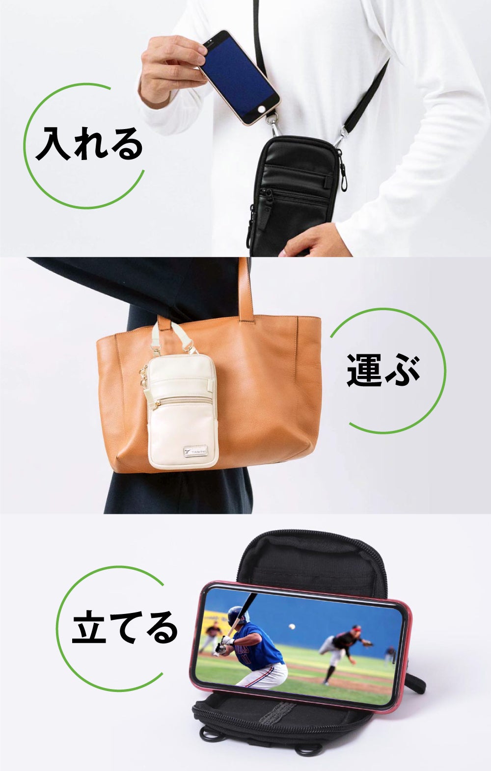 大切で身近なスマホだからこそ、すぐに使える状態で携帯しておきたい。でもポッケに入れるとかさばるからバッグに入れたい、かといって普通のバッグでは大きすぎて取り出しにくい...。