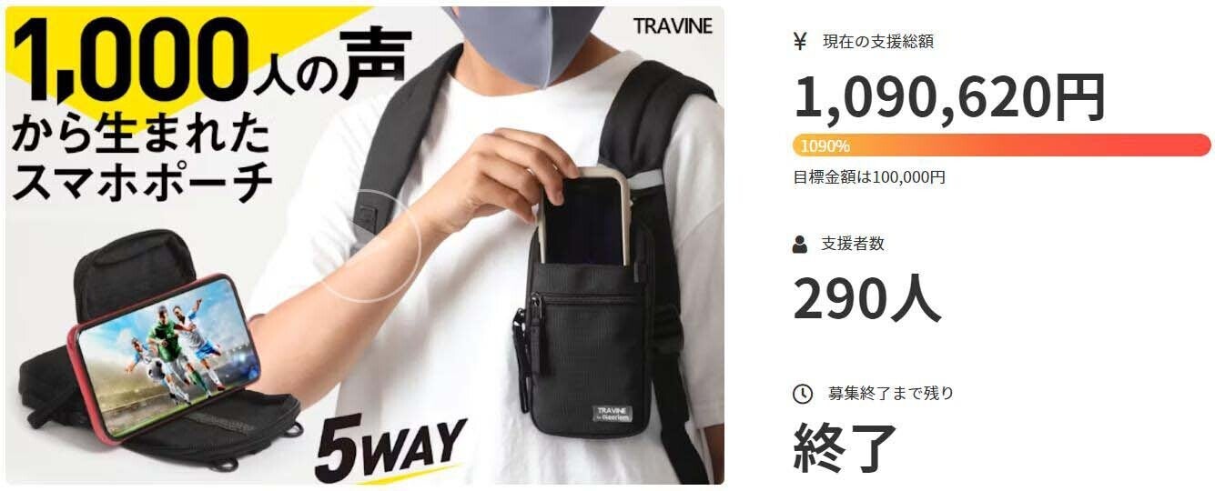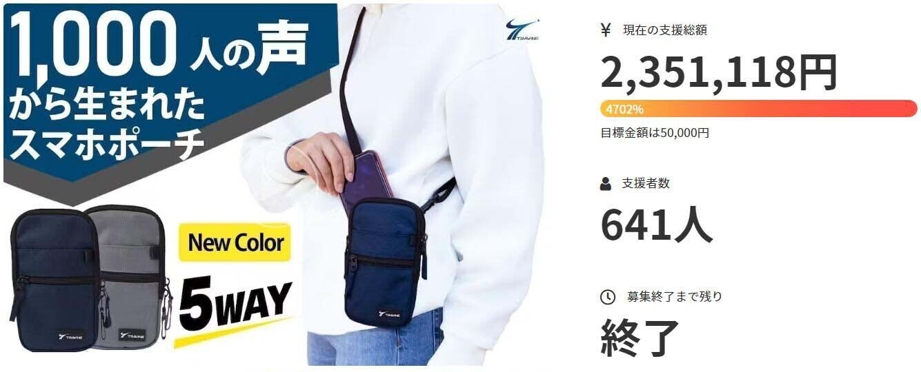 シリーズ第一弾の「1,000人の声から生まれたスマホポーチ」では、多くのご支援を頂ました。