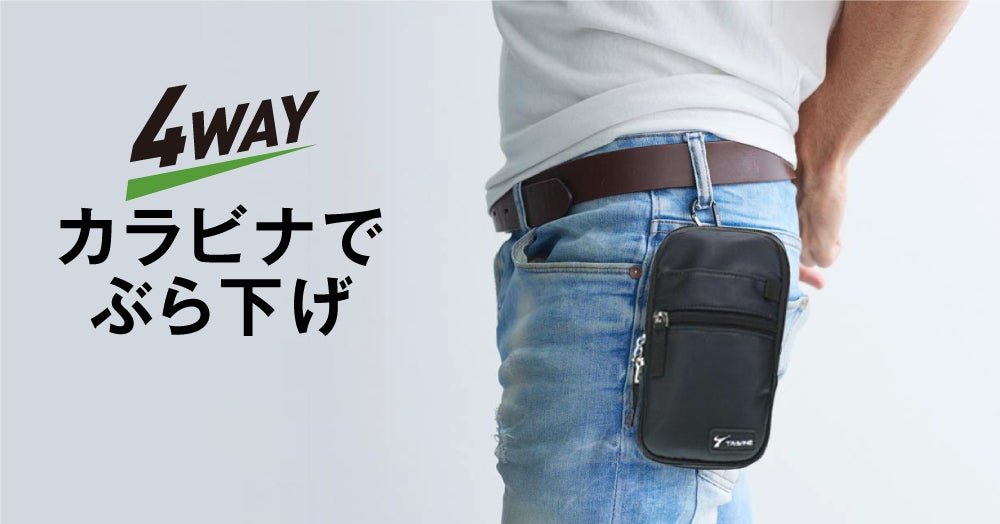 カラビナを使用することでベルトループ、リュックなどにぶら下げることができます。
