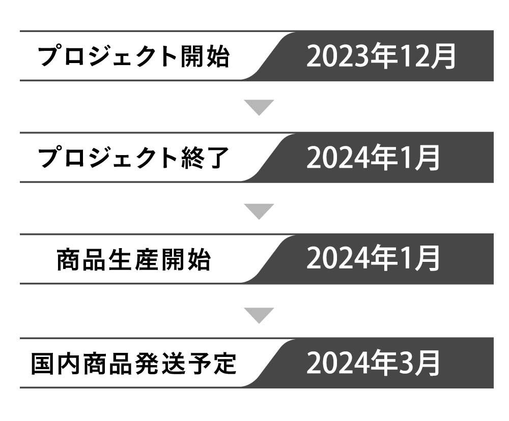 ・ 本文中に記載させていただいたスケジュールは、あくまでプロジェクト公開時点の予定です。原則として、配送遅延に伴うご支援のキャンセルはできませんが、リターン配送予定月から6ヵ月を超えた場合には、希望者に限りキャンセルにて対応させていただきます。(製造工程、配送状況、新型ウィルスの状況等、止む得ない事情によりお届けが遅れる場合がございます)
