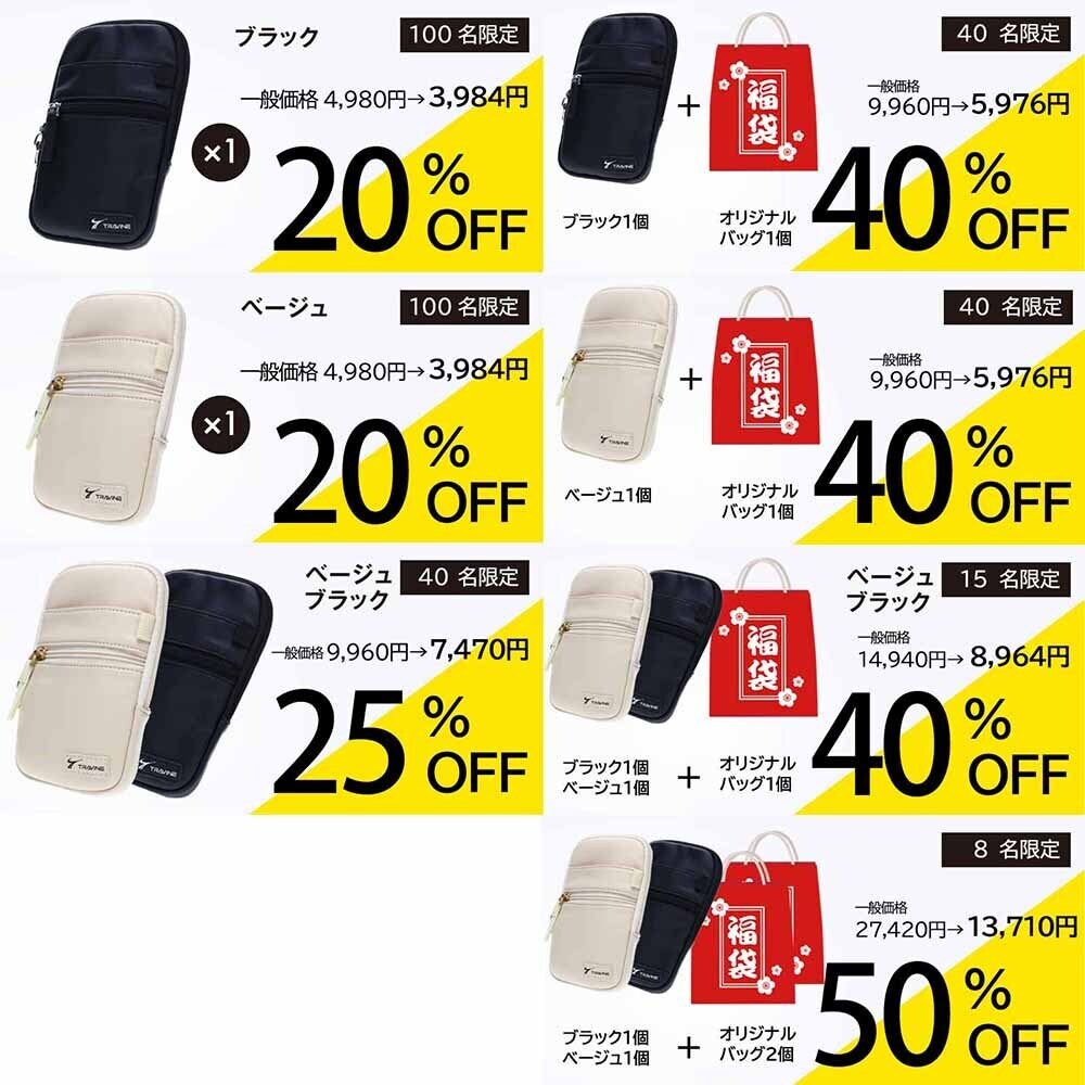 オリジナルバッグ(中身はお楽しみ)が付いたお得な福袋セットを数量限定でご用意しました。