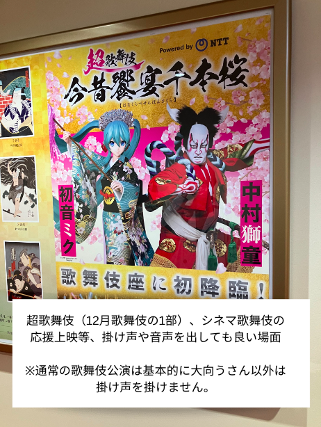 ※現状、素人の掛け声は舞台の全体の雰囲気を崩してしまう恐れもあるので、基本的に大向うさん以外に掛け声を出すことはしません。超歌舞伎**を除く歌舞伎座の演目は、この不文律が少なからず存在すると思っております。