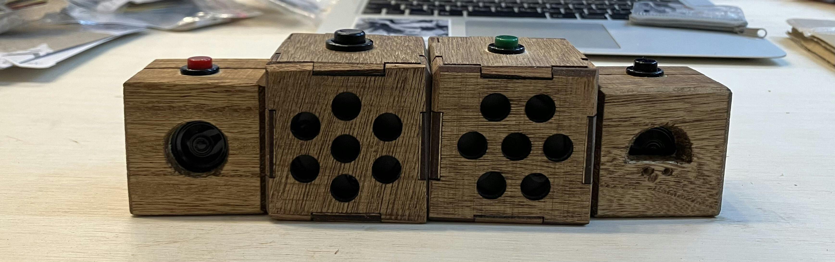 2024/01/16 22:00こんにちは!標題の通り、竹コースの「歌舞伎応援ボタン」のミニ版の試作品が完成しました!(※トップ画像の4つのボタンのうち中央2つです。)約5x5x5 cmの手のひらサイズになりました、かわいいですね。リターンの「歌舞伎応援ボタン」のミニ版は、さらに木材の質を高めようと思っています!引き続き応援どうぞよろしくお願いします!松コースの「歌舞伎応援ボタン」の通常版との違いは、(サイズを小さくするにあたり)機能と音量が縮小されています。⚪︎ミニ版:音声は1種類のみ ⇔ ○通常版:音声を3種類選ぶことができる⚪︎ミニ版:音量調節なし ⇔ ○通常版:音量調節あり(小さくすることが可能)⚪︎ミニ版:音量は小さめ ⇔ ○通常版:音量は大きい⚪︎ミニ版:木箱のアレンジなし ⇔ ○通常版:木箱にお好きな柄をプリント可能※参考(通常版 もっと見る